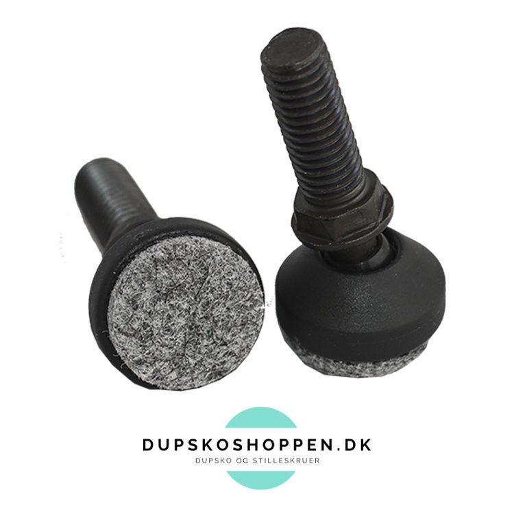 Stellschraube mit Kugelgelenk, Filz und Schlüsselweite. Die Schlüsselweite beträgt 6 kt. El. Schraube aus Zinkmetall mit Kunststoffsockel. Material: Die M10-Schraube ist schwarz. Die maximale Belastung beträgt 100 kg, der Neigungswinkel maximal 25 Grad.